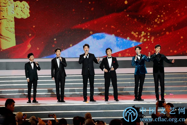 廖昌永、王晰、阿云嘎、周深、王凯、蔡程昱演唱歌曲《向往》。 中国文艺网 高晴 摄