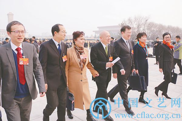 3月3日,中国人民政治协商会议第十三届全国委员会第二次会议在北京人民大会堂开幕,图为文艺界委员们意气风发走进会场。会议期间,他们将积极建言献策、参政议政。