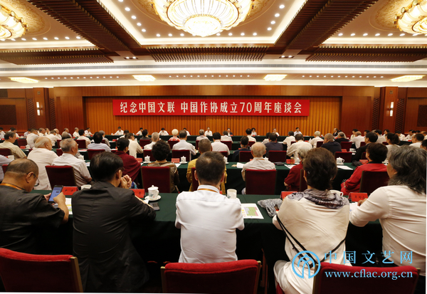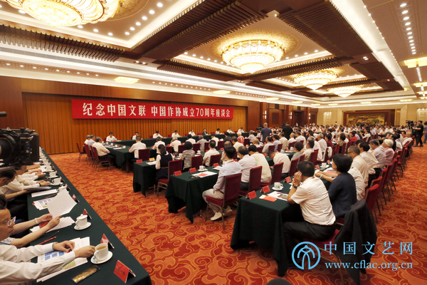 7月16日,纪念kaiyun电子 、中国作协成立70周年座谈会在人民大会堂举行。图为座谈会现场。中国文艺网 高晴 摄