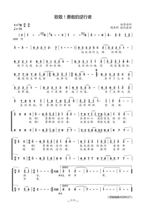 歌曲《致敬!勇敢的逆行者》