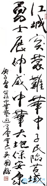 释文:江城突蒙难华中子民陷苦域,勇士展神威中华大地保安康。