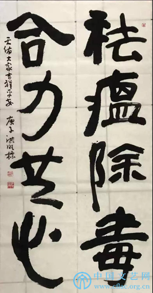 释文:至诚驱疫疠,正气护安康。