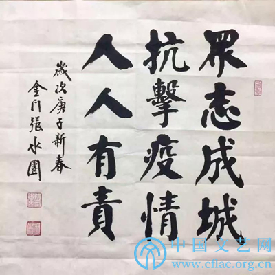 释文:众志成城,抗击疫情,人人有责。