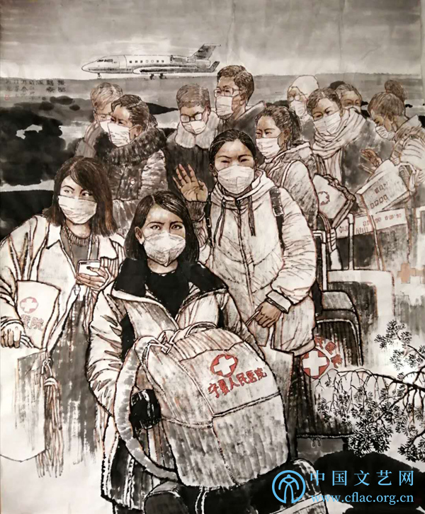 “文艺工作者应该关注疫情中的人性和精神,用文艺的形式抚平人们心中的焦虑与不安。”画家朱彪在创作《请祖国放心》时始终不离这个想法。