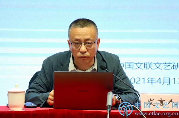 4月13日,全国文联信息化建设工作会议在四川成都召开。图为浙江省文联党组成员、书记处书记吕伟刚进行经验交流发言。