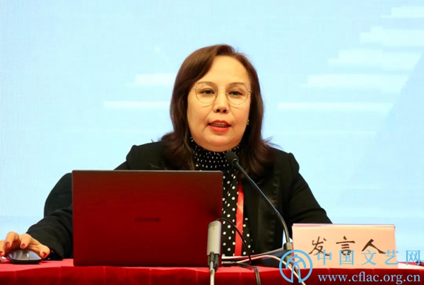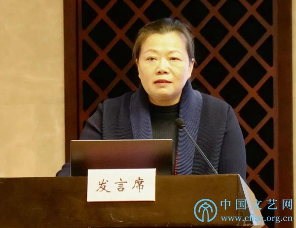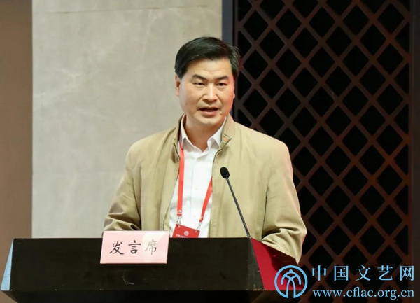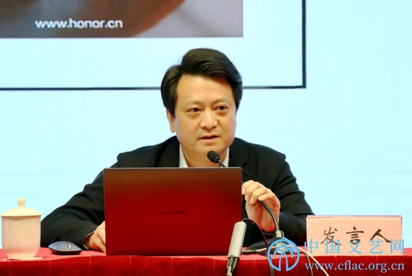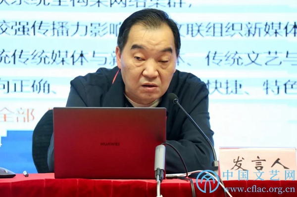 4月13日,全国文联信息化建设工作会议在四川成都召开。图为kaiyun电子 文艺研修院常务副院长傅亦轩进行经验交流发言。