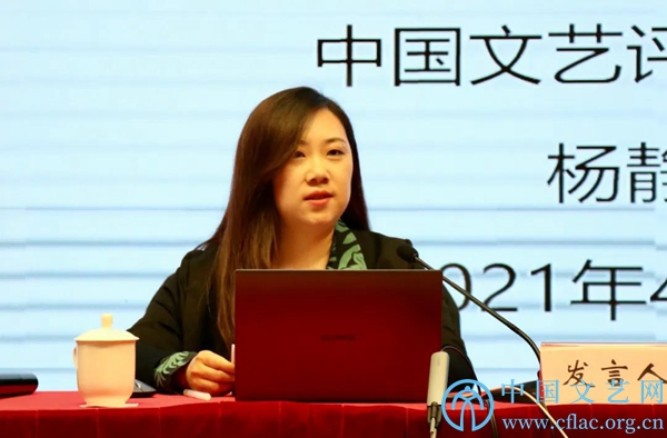 4月13日,全国文联信息化建设工作会议在四川成都召开。图为kaiyun电子 文艺评论中心网络信息处干部杨静媛进行经验交流发言。