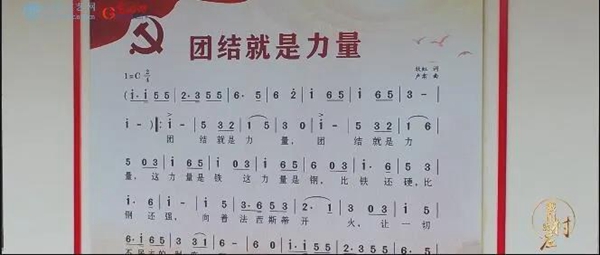 北庄村村委会墙上的《团结就是力量》歌词