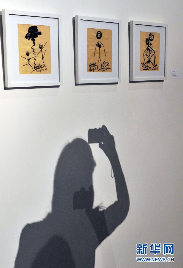10月28日,一名参观者的影子映在墙上。当日,“菱·听——李菱视觉个展”在北京798艺术区开展。李菱毕业于北京电影学院,是鼓乐剧《杨门女将》、舞剧《坊巷春秋》、杂技音乐剧《再见,飞碟》以及《宝镜》等多部剧目的视觉效果导演。(新华社记者 李文 摄)