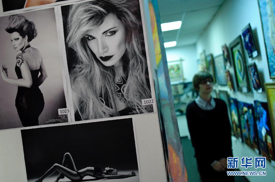 11月27日,参观者在莫斯科举行的俄罗斯国际当代艺术周开幕展上观看艺术作品。当日,为期6天的俄罗斯国际当代艺术周在莫斯科开幕,来自20多个国家和地区的艺术创作者们展示了绘画、图形、摄影、雕塑等当代艺术作品。(新华社记者 姜克红 摄)