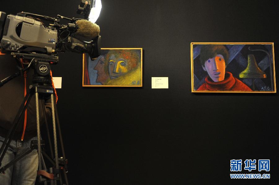 1月5日,一名摄像记者在拍摄展出的绘画作品。当日,“维尔纳·贝格——从表现主义到波普艺术”展览在北京中国美术馆开幕。展览共展出奥地利著名画家维尔纳·贝格(1904--1981)的70多件油画及16件版画作品,从一个侧面反映了20世纪奥地利艺术的文化境遇与艺术特征。(新华社记者 鲁鹏 摄)