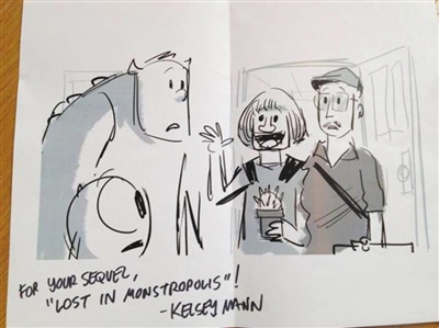 皮克斯对于徐峥的到访非常重视,各位主创特意提前观看了《泰囧》。在皮克斯担任资深绘图师的万敏担当了的导游,她带徐峥了解了一部动画片是如何从概念演变为电影画面。作为《怪兽大学》的绘图动画师,万敏还亲手绘制了一幅“毛怪版”徐峥漫画送给他。《怪兽大学》故事部总监凯斯·曼则手绘了“《泰囧》遭遇《怪兽大学》”的场景,并题词“《泰囧》的续集《怪囧》”。探访中,万敏透露《怪兽大学》超过10万个故事图稿和其身上500万根毛发都创造了皮克斯的纪录。