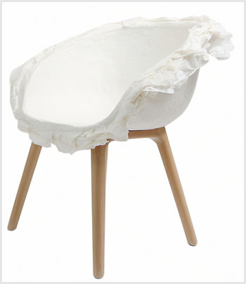 再一次质的革命,糊伞的工艺可以延伸到椅子的制作。一把由宣纸做成的椅子“飘”,韵味无穷