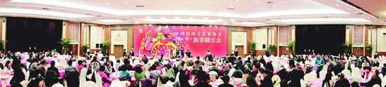 1月10日下午,首都大酒店紫云厅张灯结彩、欢歌笑语,洋溢着一片喜庆祥和的节日气氛,中国民协2013年新春联谊会在此隆重举行。为充分发挥中国民协联络、服务、协调的基本职能,加强与 各领域会员的沟通,喜迎2013年新春佳节, 界人士欢聚一堂,共同分享丰收的喜悦,共同畅谈、谋划新的一年推动 创新发展大计。
