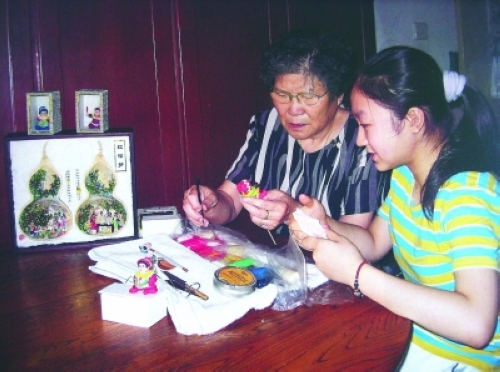 除了担心学习进度不快以外,教学、工作的场地是郎志丽另一个忧心的方面。郎志丽的丈夫陈永昌也是知名工艺美术师,专攻北京刻瓷。他们家里一共就60平米大,小小的客厅供二人展列作品、分头工作本已十分拥挤,再加上徒弟就更感到转不过身来。不过好消息是北京市有关文化保护单位已同意为她租房,用来展示和教学,因此这个问题有望在今年解决。