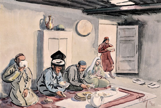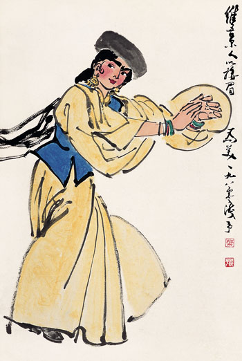维吾尔人以接眉为美(中国画) 1980年 叶浅予