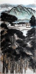 其水墨山水传承李家风格又趣味别具,既笔墨精严、浑朴厚重,又潇洒飘逸、洋溢鲜活生气,时而有大开大阖之笔,彰显军旅生涯和胸襟豪迈壮阔。其水墨人物造型准确、墨韵幽雅,凸现扎实的素描功底和独到的挥洒自如;曾数十次远赴西藏、新疆采风写生,跋涉求真、汲取营养,又历年游学欧美、融汇中西,兼收并蓄、厚积薄发。