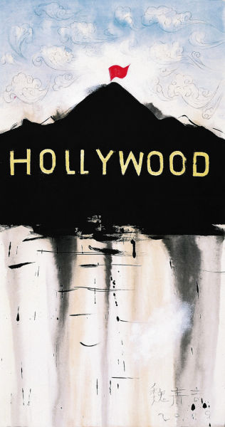 魏青吉,好莱坞山上的紅旗。展于“原道:中国当代艺术的新概念”