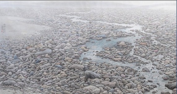 “清泉石上流——李留海画展”24日在北京民族文化宫举行。以石入画是中国画的一个传统,但多少代画家的兴趣只在巉岩怪石,对河滩上的卵石不屑一顾。河洛之子李留海创作的石水画,在中国画历史上留下了新的一页,普通的河卵石因他的创作而被赋与了美丽的艺术生命。李留海另一令观众驻足的作品是组画《马街书会》,众多神情毕肖的普通百姓、宏大的场面、颇具匠心的构图,洋溢着一股扑面而来的现实生活气息。