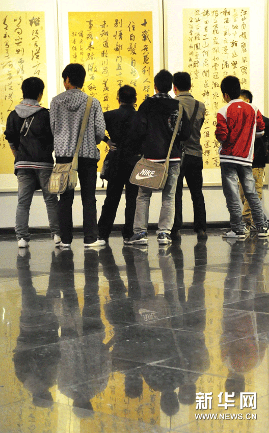(1)11月12日,观众在南宁举行的全国第十届书法篆刻作品展展厅参观。