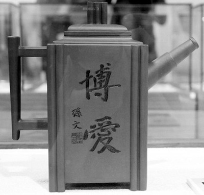 图为“顶天立地”博爱紫砂壶。该壶由紫砂方壶大师、江苏省工艺美术名人邵顺生制作。王连伟摄