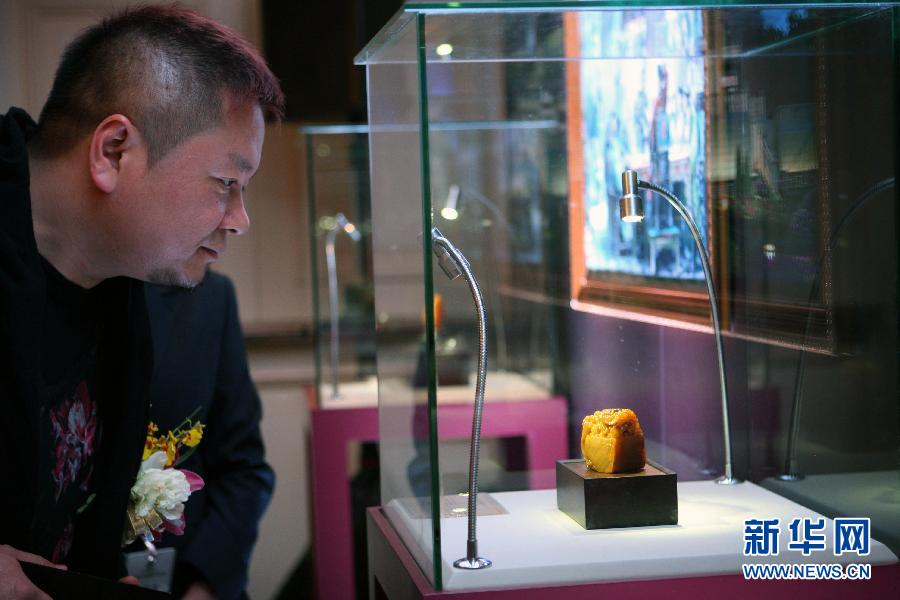 1月18日,嘉宾在活动现场观看展出的田黄石雕。当日,“收藏福州”文化盛典在香港举行。这是福州首次在海外专门举办推介城市文化的主题活动。 (新华社记者 李莹 摄)