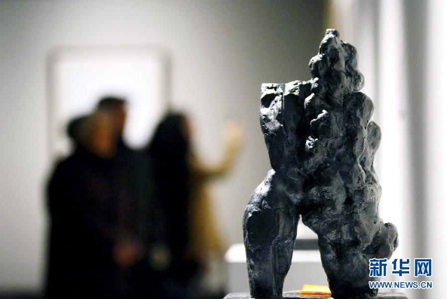1月24日,参观者在江苏省美术馆欣赏雕塑作品。当日,“感悟生活——江苏省美术馆画家2012年度作品展”在位于南京的江苏省美术馆新馆与观众见面,并将持续至2月1日,展览汇集了江苏省美术馆高级美术师创作的国画、油画、版画、雕塑、书法等作品。(新华社发)