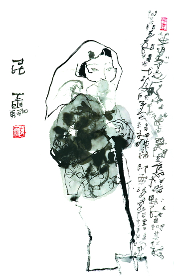 民工图(纸本水墨)76×48厘米 2013年 石虎