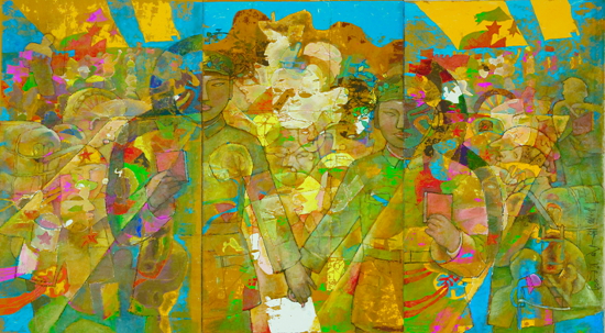 红牵图(布本重彩)120×180厘米 2008年 石虎