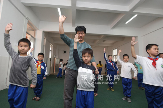 下午4时许,南城小学5楼的舞蹈室人声鼎沸。这正是南城小学粤曲班的训练时间。粤曲班的30多名小学生正分成两批跟着镇曲协的演员老师练身段和发声等基本功。