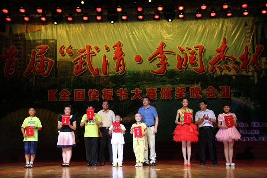 从3日到5日,经过3天5场的激烈角逐,共评出职业组、非职业组、少儿组一等奖分别为7个、6个和6个。5日晚,颁奖晚会在武清区天狮集团会议中心举行。中国曲协主席、中国文学艺术基金会副理事长兼秘书长姜昆,中国曲协分党组书记、主会副主席、秘书长董耀鹏,中国曲协顾问、中国曲协快板艺委会名誉主任朱光斗,中国曲协分党组副书记刁惠香,中国曲协分党组成员、副秘书长曲华江和武清区委、区政府有关领导出席颁奖晚会。晚会由相声表演艺术家牛群、中央电视台文艺频道主持人周宇主持,姜昆、戴志诚、郭达、高洪胜、张志宽、柴京云、柴京海、温淑萍、焦建东、石磊、王彤、随风、高梦娇等为武清观众奉献了精彩的节目。