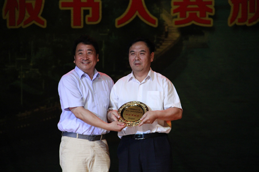 曲华江、韩胜军、李学鹏为少儿组一等奖获得者颁奖