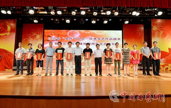 由江苏省文化馆主办的全省“宣传十八大文艺作品征稿”活动6号晚上在如东揭晓。经过专家评委们的认真评审,无锡市周林海创作的小品《讲新闻》获得一等奖。苏州市倪夏宇、红专创作的音乐快板《文化强国谱华章》、扬州房殿宏创作的诗朗诵《为“两个率先”喝彩》获得了二等奖。南通於国鑫创作的歌词《老街巷》、宿迁市庄恒越创作的小戏《心愿》、南京市栾戈平创作的诗朗诵《追寻幸福》、盐城市朱福全、张朝凡创作的小戏《二混子告状》、南通缪新华创作的歌词《最美中国人》获得三等奖。