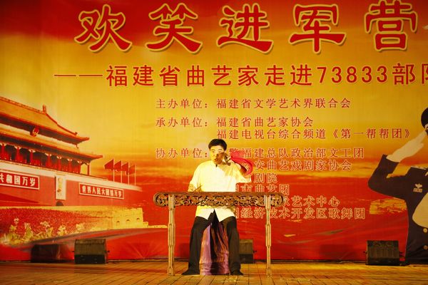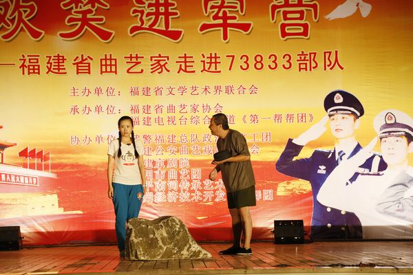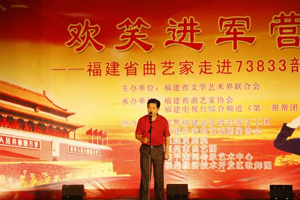 7月24日晚,为庆祝中国人民解放军建军86周年,由福建省文联组织的“欢笑进军营”专场曲艺晚会,在驻榕某部队举行。整场晚会南北曲艺品种、各门类艺术形式交相晖映,现场欢声、掌声不断,80多位艺术家与400多名部队官兵共叙鱼水情谊,为最可爱的人送上“八一”节的诚挚祝福。