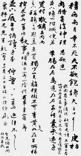 “积病两月,幸不死。天不欲饱馋夫之口耳。皮枯肉腊,无复神理。……线下阶磩,便若羊肠在左,鸟道在右。奈何。……令兄均此问好,不另礼”。(如图3所示)