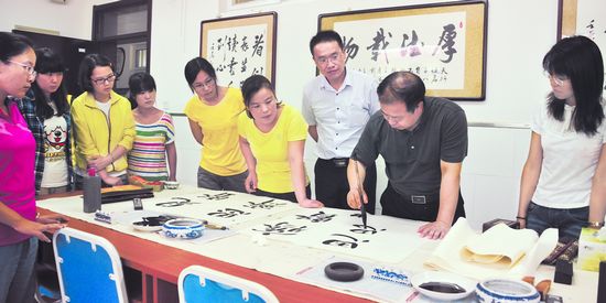 据悉,学校为了提高教师自身书法水平和教育水平,恰当激发学生书法学习兴趣,组织校书法教师韩佳惠、田硕参加区研修中心举办的小学生兼职书法教师培训班。通过学习,两位老师的书法成绩取得了明显的进步。学校对全体教师实行三笔字的培训,以提高教师的书写水平。还多次请区书法教研员到校进行指导,教师的授课水平也有了很大的提高。现在的书法课静中生趣,学生全心投入,乐在其中。