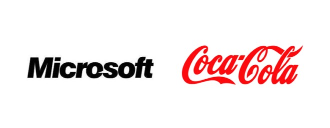 上图中,同为美国的2家著名企业的LOGO,都是以大量的字母为基础造型的LOGO