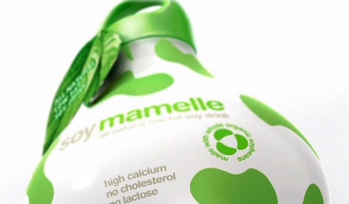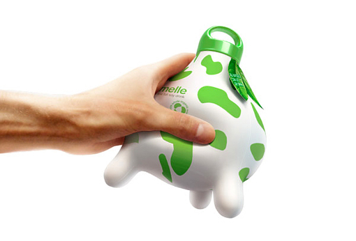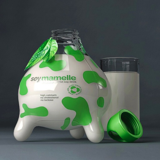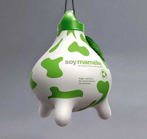 这个创意的牛奶包装,是由俄罗斯品牌代理商KIAN为’Soy mamelle’, 所设计的包装,从外形看就容易看出采用了奶牛的概念,绿色的色调,也凸现了健康自然的企业形象,企业通过创意的包装设计,塑造了企业公司的形象,可以说是很好的营销手段。