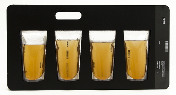 这是啤酒包装设计以冰袋为设计灵感,轻便、简单,而且可以环保再利用呢! “Leuven”这种新的设计“牢不可破”,无需担心啤酒会漏出来,每袋拥有330ml的容量(和普通罐装啤酒一样哦~),而且成本低,易生产。