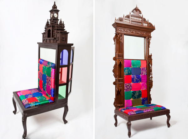 印度设计师阿帕娜基于古老的家具创造了一系列天马行空的椅子。椅子用A级柚木木材和回收古董物品制造,两者之间存在着错综复杂的渴望,就像是深陷一个幻想的世界,每件物品都讲述了一个不同的故事。细节如蝴蝶、花朵和相框集成到结构框架中,并将它们转化为独特的艺术作品。这些椅子不仅给人们提供一个坚固的坐处,精美的丝绸与仿皮、明亮的颜色和手绘斑马模式也唤起一种奢华和幽默。