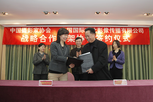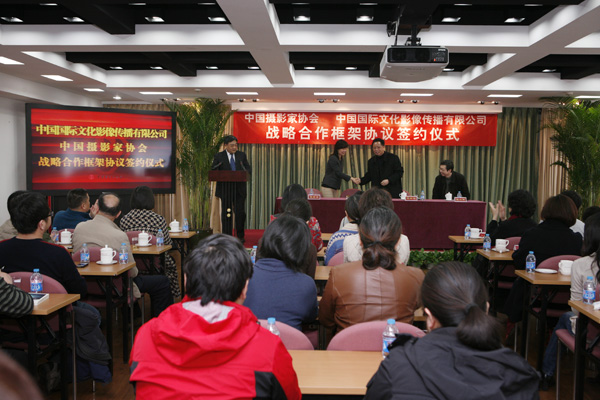 中国摄影家协会与新华社的中国国际文化影像传播有限公司在北京举行战略合作框架签约仪式。 摄影:吴承欢