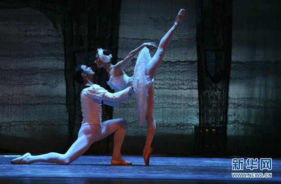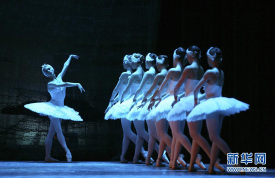 12月27日晚,演员在表演芭蕾舞剧《天鹅湖》。当日,俄罗斯芭蕾国家剧院经典芭蕾舞剧《天鹅湖》在南京人民大会堂上演,为南京观众献上一场精彩的演出。 新华社发(颜闽航 摄)