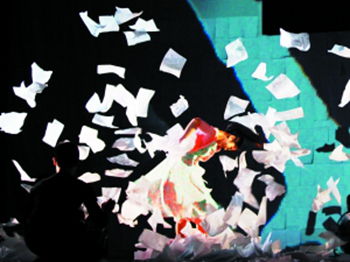 “我看不懂现代舞”,是许多观众初次欣赏现代舞演出不由发出的感叹。而《情书》在走出小剧场,投向大众市场的过程中,试图透过剧场文本、录像、场刊宣传等各种手段让观众看得明白。该剧以“情书”这一通俗话题为主题,并请来本土电台DJ子风客串演出,在幕与幕之间,穿插读出提示剧情的5封情书,为观众的欣赏提供了解读线索。剧中的5幕演出,分别展现了缠绕两代人的骨肉亲情、自我追逐的摘星豪情、青春焕发的一往深情、被爱遗忘的孤寂逃情及最后蓦然回首的豁达忘情。作为全剧主题的一纸“情书”,在舞美师赖妙芝的设计下,更营造出千变万化的效果,数千张A4纸贴满了舞台的布景,又幻化成参天大树,更满台纷飞伴着舞者一起腾空,为观众带来强烈的视觉震撼。