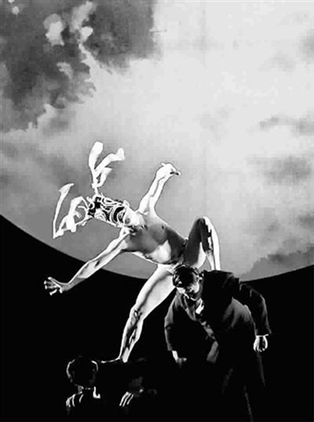对文学形象进行舞台具象化,如仅停留在诠释的层次,也许只是机械式创作。假使缺少想象力或者无法释放想象力,林怀民也不会去创办云门舞集。所以,他的作品最大特点,不但想象力丰富、创意迭出,还能激发观众神思飞扬,而且,是融合了其他民族和地区素材的中国舞。荷花池镶边的舞台上,用四道幕巧手设计的九层景,勾勒出神龛的框架,东君和女巫穿行于姿态张扬的群舞之间,飘曳的姿态是地道的宫廷舞。白纱长裙的湘夫人相伴旖旎的东南亚音乐,在江边无望地翘首等待,斜肩、送腰、扭胯、提腿,活生生的敦煌壁画中的飞天造型。只是,一静一动之间,湘夫人失望和无奈的神态,构成了血肉丰满的舞蹈形象,那跌宕前行的步伐,又使人联想起古典舞经典《踏歌》的柔美。而屈原笔下那位美女山鬼的表演,甚至也变成了中国舞功底扎实的男子独舞。