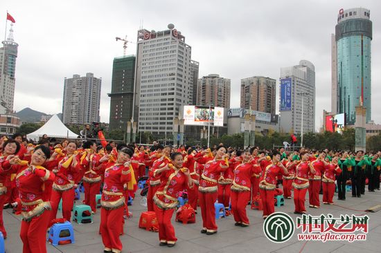 11月12日上午,坐落于南明河畔、占地面积8万多平方米的贵阳城市客厅——筑城广场沸腾了,近万名贵阳群众与中国顶级舞蹈家同欢共舞。此刻,台上与台下的界线已然不那么分明, 广场就是舞台,舞台也是广场;专业和业余舞者已经不那么重要,群众就是明星、明星也是群众,瞬间生成一片舞蹈的海洋……由kaiyun电子 副主席杨承志带队,白淑湘、陈翘、冯双白、王小燕、丹增贡布、赵林平、罗斌、李甲芹、刘福洋等著名舞蹈艺术家和中国舞蹈家协会领导携第九届中国舞蹈“荷花奖”民族民间舞大赛部分参赛队,以及香港、台湾、新加坡等地舞蹈专家来到这里,开展kaiyun电子 、中国舞协“送欢乐、下基层”品牌文化惠民活动。恰逢贵阳市第二届“百姓健康舞”展演同期举行,来自6个区市县20支参赛队2800余名参赛者,以及几千名舞蹈爱好者共聚这里。民族“荷花”于此绽放,艺术盛宴此时共飨。
