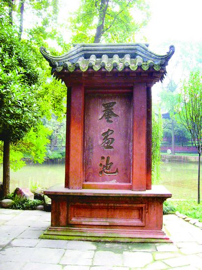罨画池非等闲之地。在唐代,这里就是著名的园林,湖畔东亭,曾出现在裴迪和杜甫相互酬唱的诗篇中,诗中的梅花,在园林中年年盛开。到南宋,因一位伟大的诗人在此地流连,朝夕相伴,迷恋上这里的湖波亭台和花草林木,诗长吟,情永留。罨画池,和这位诗人的名字,难分难解地连在了一起。这位诗人,是陆游。使我感兴趣的是,游遍天下名胜的陆游,为何会对罨画池如此钟情。我问陪我喝茶的崇州友人,友人笑而不答。