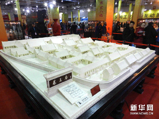 12月20日,在北京中国国际展览中心,观众在第七届中国北京国际创意产业博览会上欣赏骨雕作品《恭王府》。