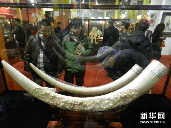 12月20日,在北京中国国际展览中心,观众在第七届中国北京国际创意产业博览会上欣赏牙雕作品《群仙祝寿》。