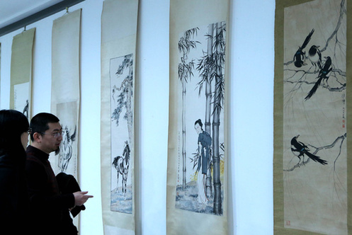 1月17日,参观者在观赏徐悲鸿的书画作品。新华网图片 李明放 摄