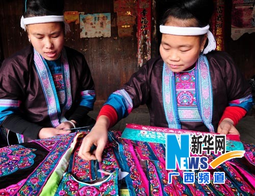 “侗族刺绣”是广西壮族自治区的非物质文化遗产,这个集纺织、印染、剪纸、刺绣于一体的传统工艺为当地许多妇女所熟练掌握,仅同乐乡就有500多名农村妇女在做刺绣,一些妇女通过做刺绣已拥有了一定的收入。